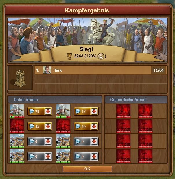 Truppen dort: 2 Beserker 3 Armbrust 3 Ritter - leider Verlust 4